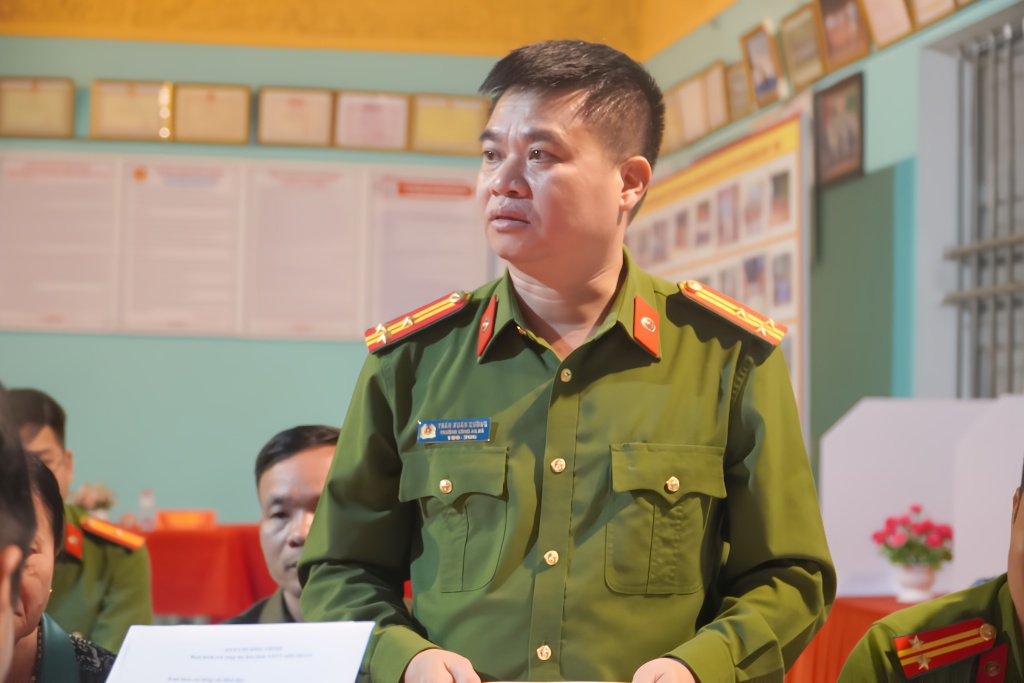 Đồng chí Trần Xuân Cường – Trưởng Công an xã đã báo cáo chi tiết kế hoạch phương án bảo vệ an ninh trật tự