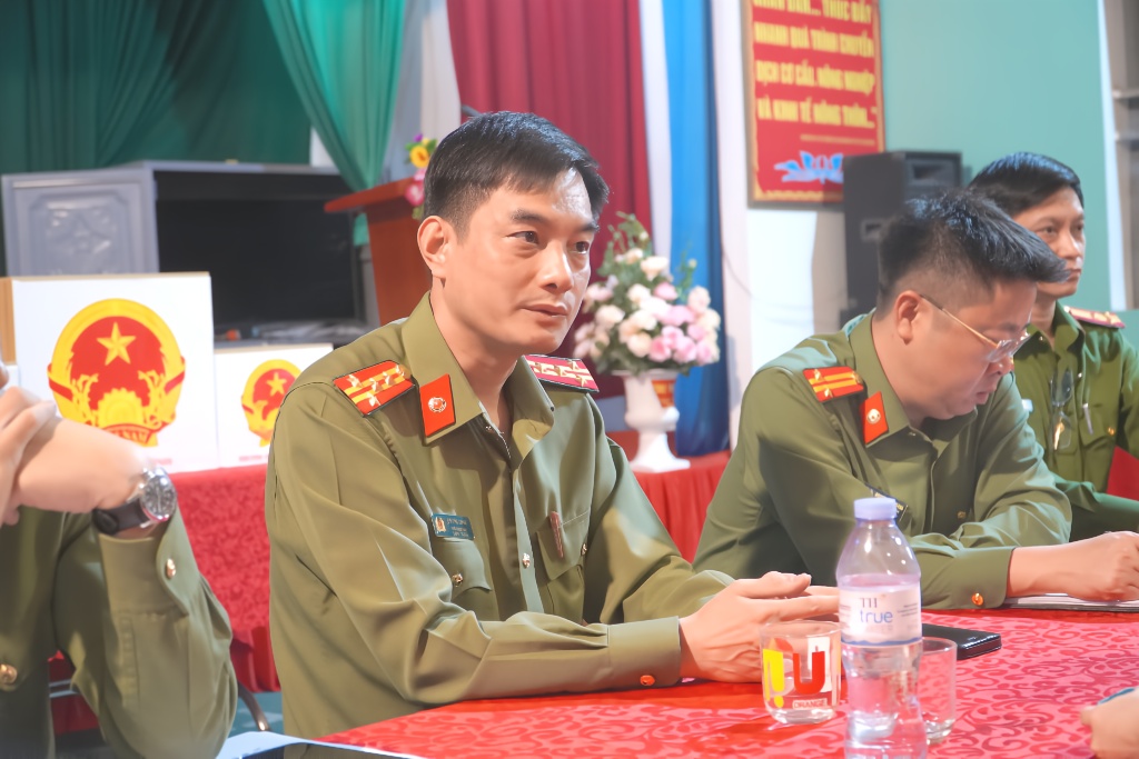 Phát biểu kết luận buổi kiểm tra, đồng chí Đại tá Đỗ Đức Trịnh – Phó Giám đốc Công an tỉnh ghi nhận và biểu dương tinh thần trách nhiệm của cấp ủy, chính quyền và lực lượng Công an xã Tân Dĩnh trong việc thực hiện tốt các khâu chuẩn bị cho ngày bầu cử.