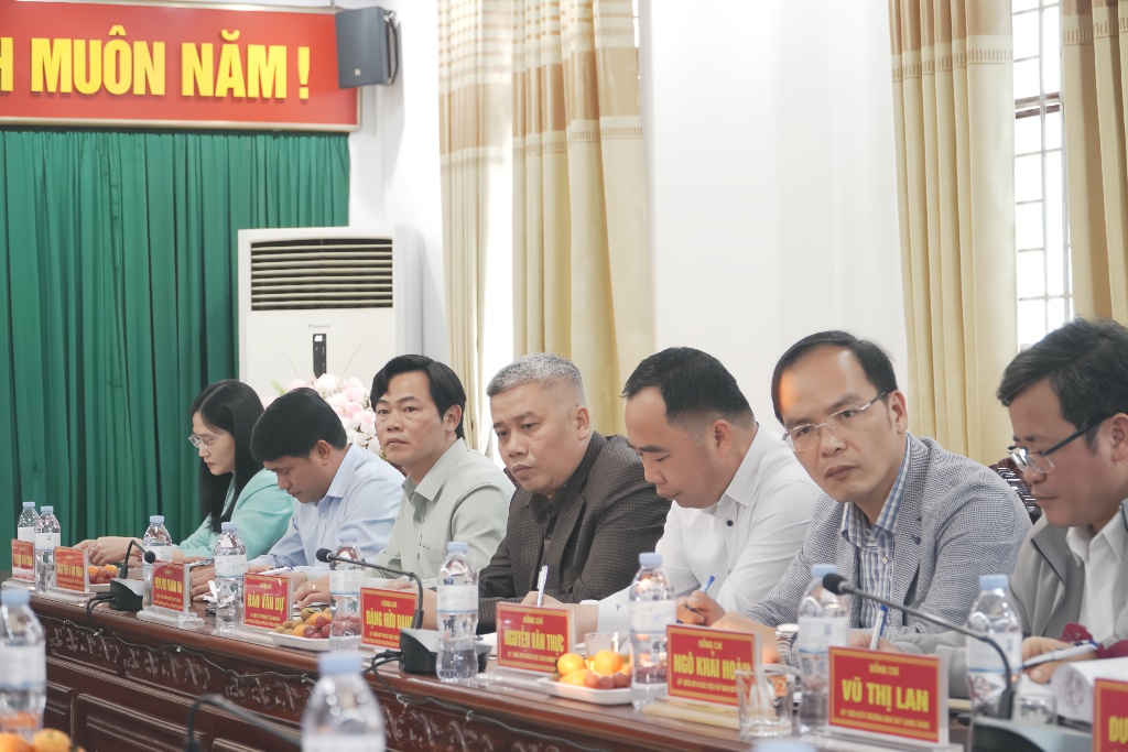 Về phía địa phương làm việc với đoàn công tác có các đồng chí: Trương Ngọc Bích – Bí thư Đảng ủy xã; Nguyễn Văn Minh – Phó Bí thư Đảng ủy, Chủ tịch UBND xã; Hoàng Mạnh Hà – Phó Bí thư Thường trực Đảng ủy, cùng các đồng chí trong Thường trực Đảng ủy, HĐND, UBND, Ủy ban MTTQ và Ủy ban bầu cử xã Tân Dĩnh.