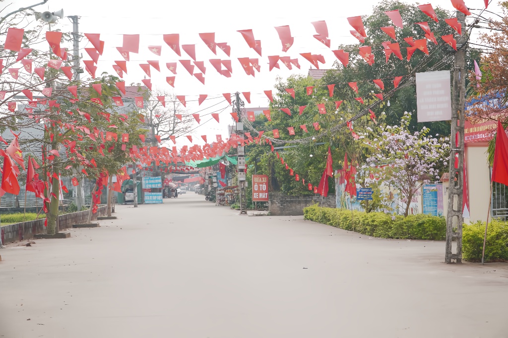 Dạo quanh một số tuyến đường, các nhà văn hóa thôn trên địa bàn xã những ngày này, có thể dễ dàng nhận thấy diện mạo các thôn đã trở nên rực rỡ hơn. Những lá cờ đỏ sao vàng tung bay trước hiên nhà, dọc các tuyến đường và tại các nhà văn hóa khu dân cư. Các pano, áp phích, băng rôn tuyên truyền về ngày bầu cử được treo trang trọng tại nhiều vị trí dễ quan sát, góp phần lan tỏa ý nghĩa và tầm quan trọng của ngày bầu cử đến đông đảo người dân. Không chỉ tại các tuyến đường lớn, ở nhiều khu dân cư, các hộ gia đình cũng chủ động treo cờ Tổ quốc, chỉnh trang lại không gian sinh hoạt, tạo nên cảnh quan khang trang, sạch đẹp. Sắc đỏ của cờ hoa hòa cùng nhịp sống thường ngày của người dân đã tạo nên bức tranh sinh động, thể hiện tinh thần trách nhiệm và sự đồng thuận của nhân dân đối với ngày bầu cử sắp tới.