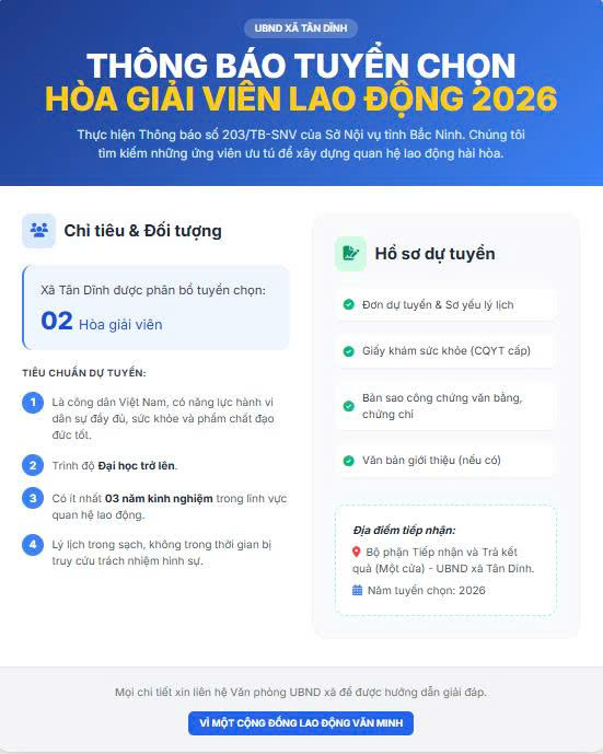 Thông báo tuyển chọn Hòa giải viên lao động năm 2026