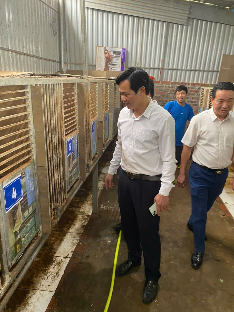 Tiếp đó, tại thôn Chùa, đoàn đã khảo sát mô hình chăn nuôi lợn sinh sản kết hợp nuôi cá của gia đình ông Mười. Với hệ thống 4 khu nuôi cá, bình quân 2 năm thu hoạch 3 vụ, mô hình mang lại thu nhập từ 600 đến 800 triệu đồng mỗi năm, góp phần nâng cao đời sống gia đình và tạo động lực phát triển kinh tế tại địa phương.