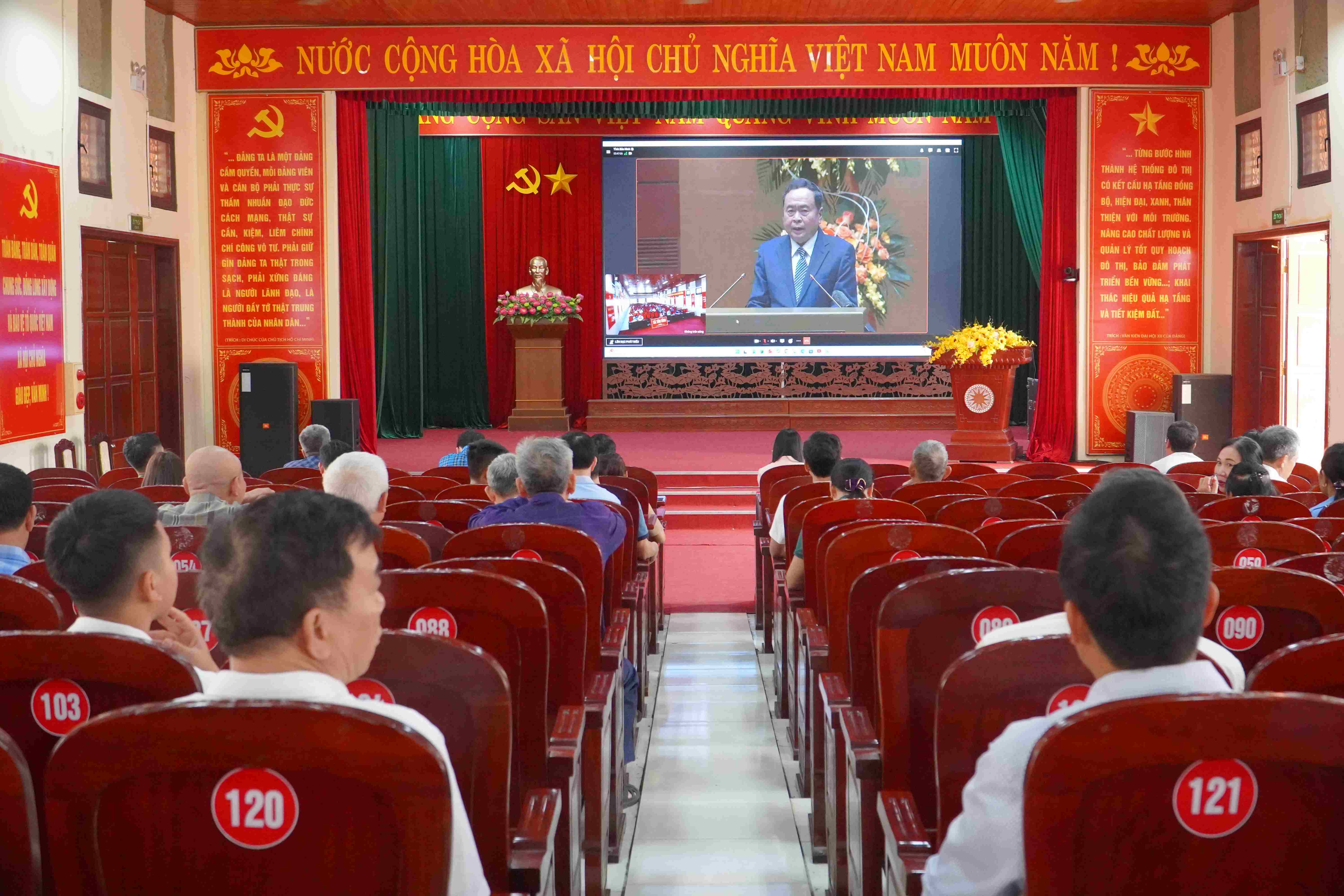 Quang cảnh Hội nghị trực tuyến tại điểm cầu xã Tân Dĩnh