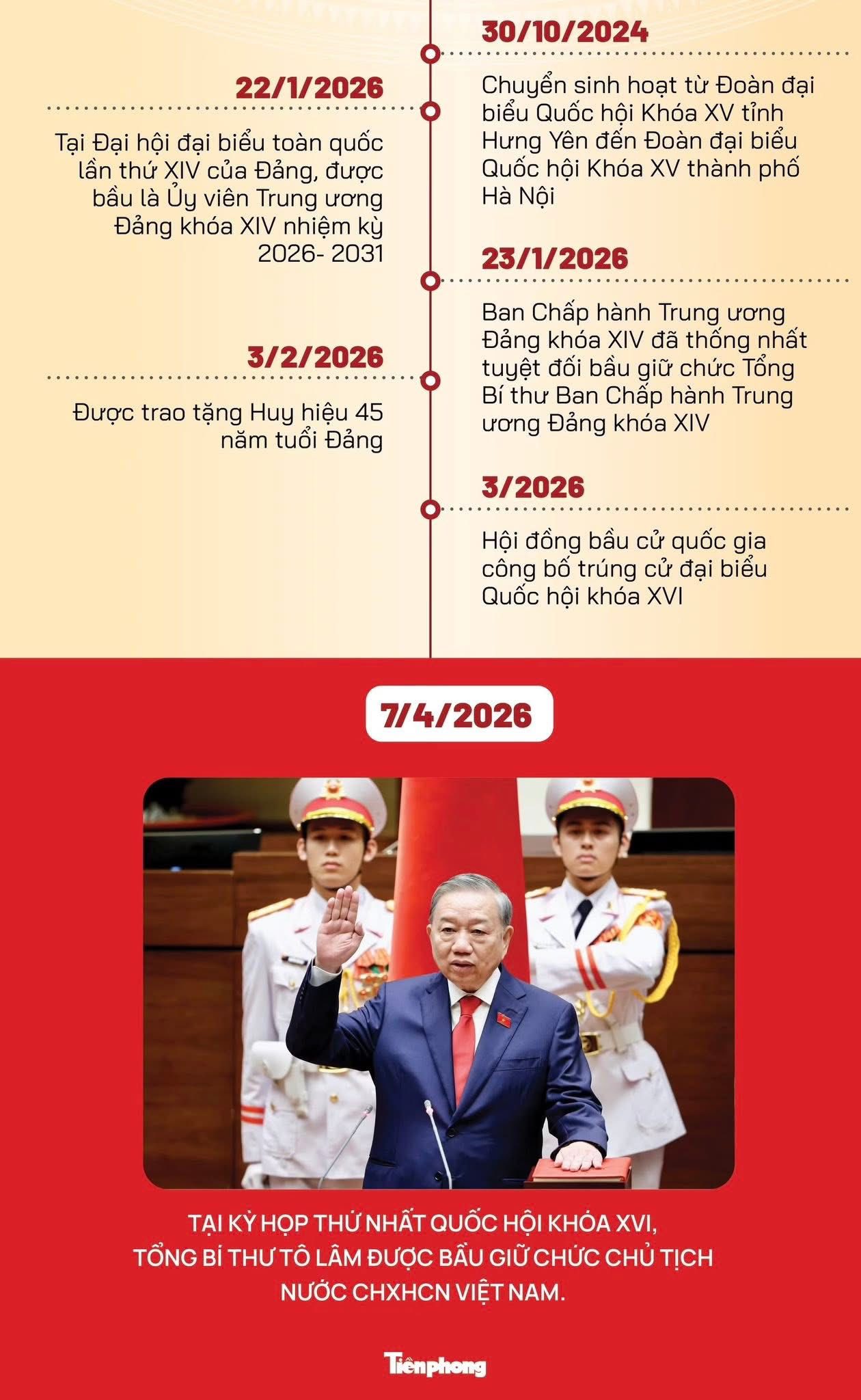 "Dưới cờ đỏ sao vàng thiêng liêng của Tổ quốc, trước Quốc hội, đồng bào và cử tri, tôi - Chủ tịch nước Cộng hòa xã hội chủ nghĩa Việt Nam, xin tuyên thệ: Tuyệt đối trung thành với Tổ quốc, với nhân dân, với Hiến pháp nước Cộng hòa xã hội chủ nghĩa Việt Nam, nỗ lực, phấn đấu, hoàn thành tốt mọi nhiệm vụ mà Đảng, Nhà nước và nhân dân giao phó", Tổng Bí thư, Chủ tịch nước Tô Lâm tuyên thệ.